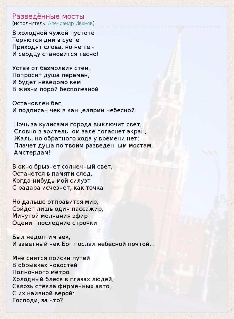 А как ты думаешь, о чем песня "Разведённые мосты" ?