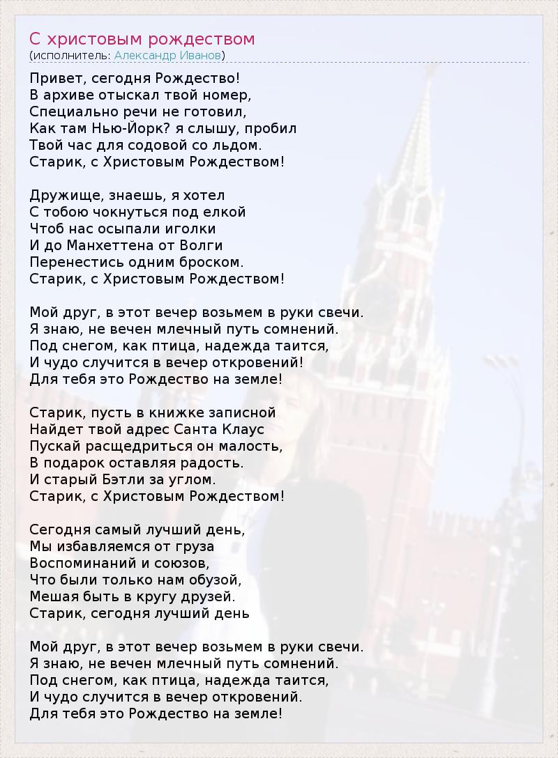 ГлавнаяИсполнителиАлександр ИвановС христовым рождеством