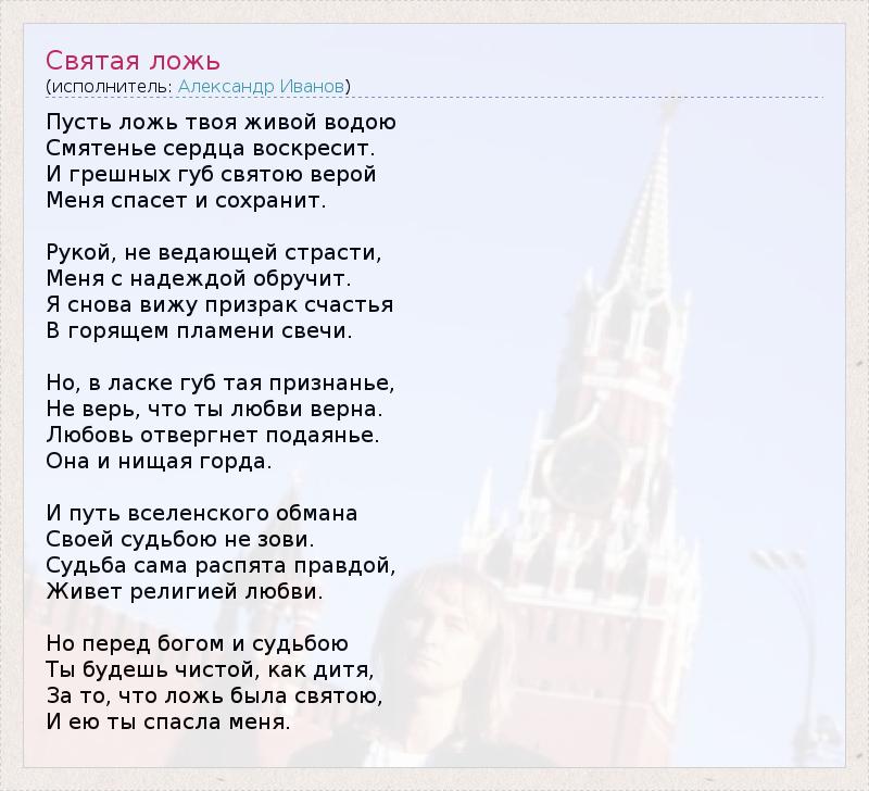 А как ты думаешь, о чем песня "Святая ложь" ?