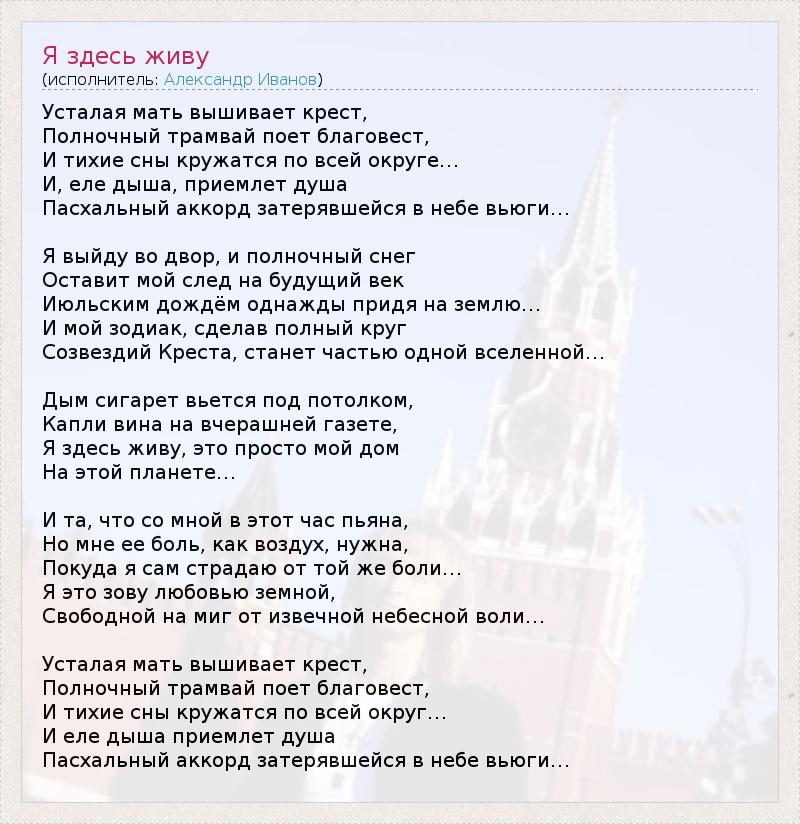 А как ты думаешь, о чем песня "Я здесь живу" ?