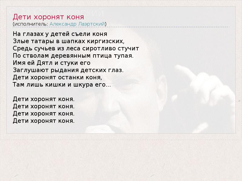 А как ты думаешь, о чем песня "Дети хоронят коня" ?