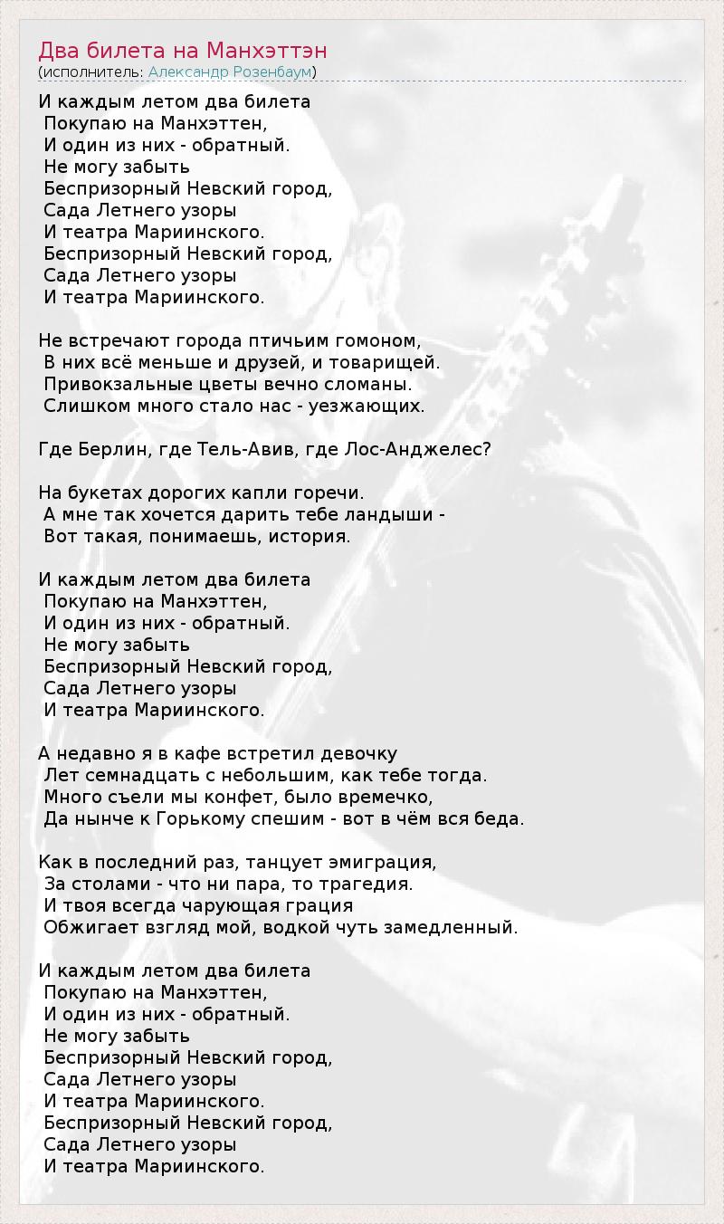 А как ты думаешь, о чем песня "Два билета на Манхэттэн" ?