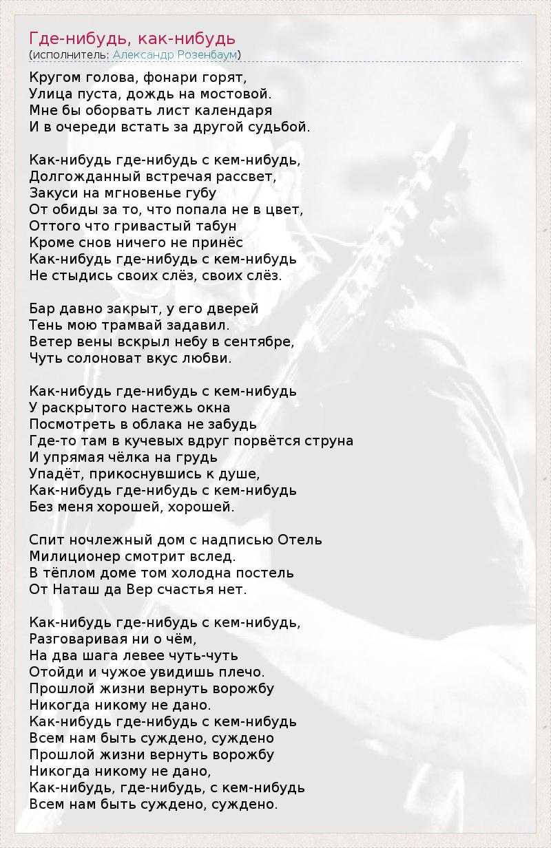 ГлавнаяИсполнителиАлександр РозенбаумГде-нибудь, как-нибудь