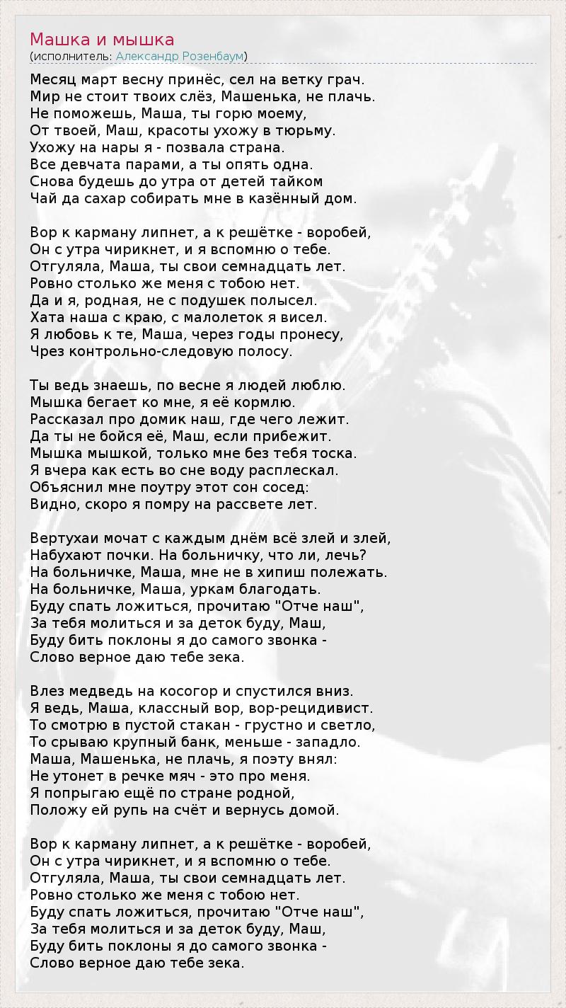 А как ты думаешь, о чем песня "Машка и мышка" ?
