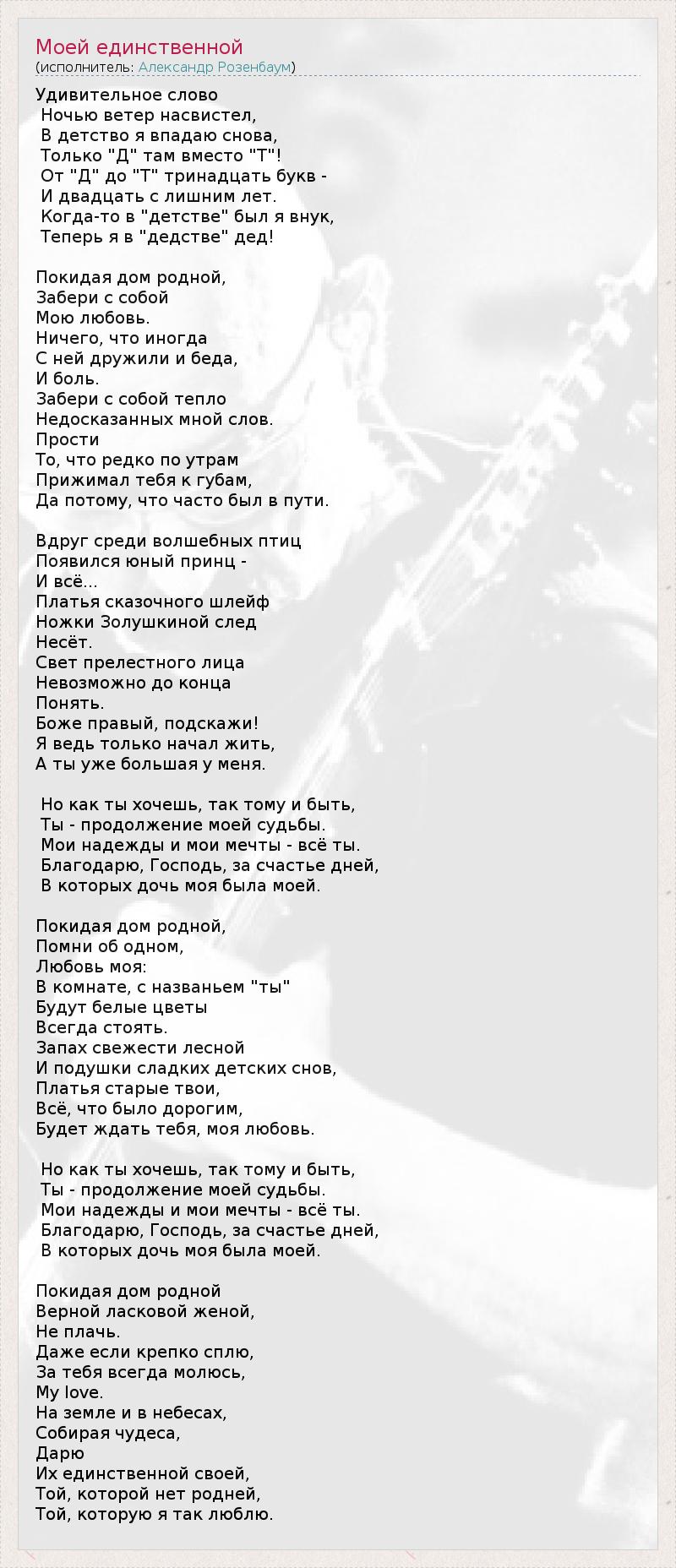 А как ты думаешь, о чем песня "Моей единственной" ?