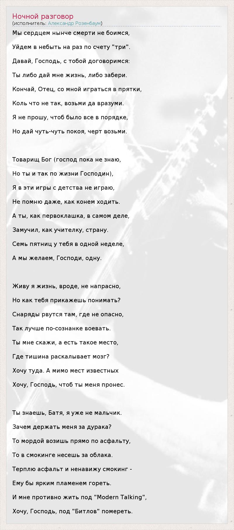 А как ты думаешь, о чем песня "Ночной разговор" ?