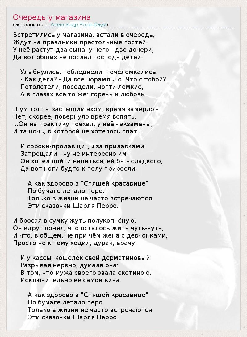 А как ты думаешь, о чем песня "Очередь у магазина" ?