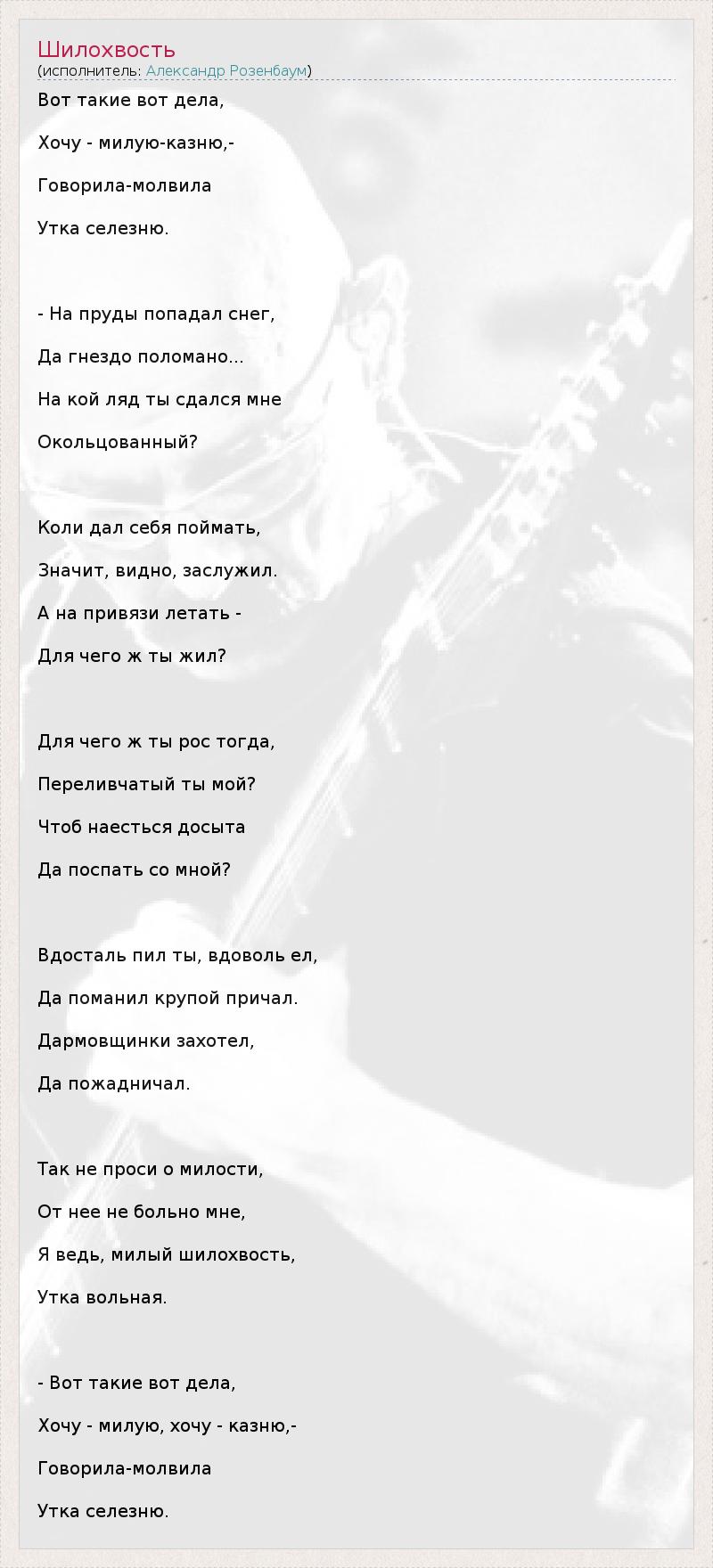 А как ты думаешь, о чем песня "Шилохвость" ?