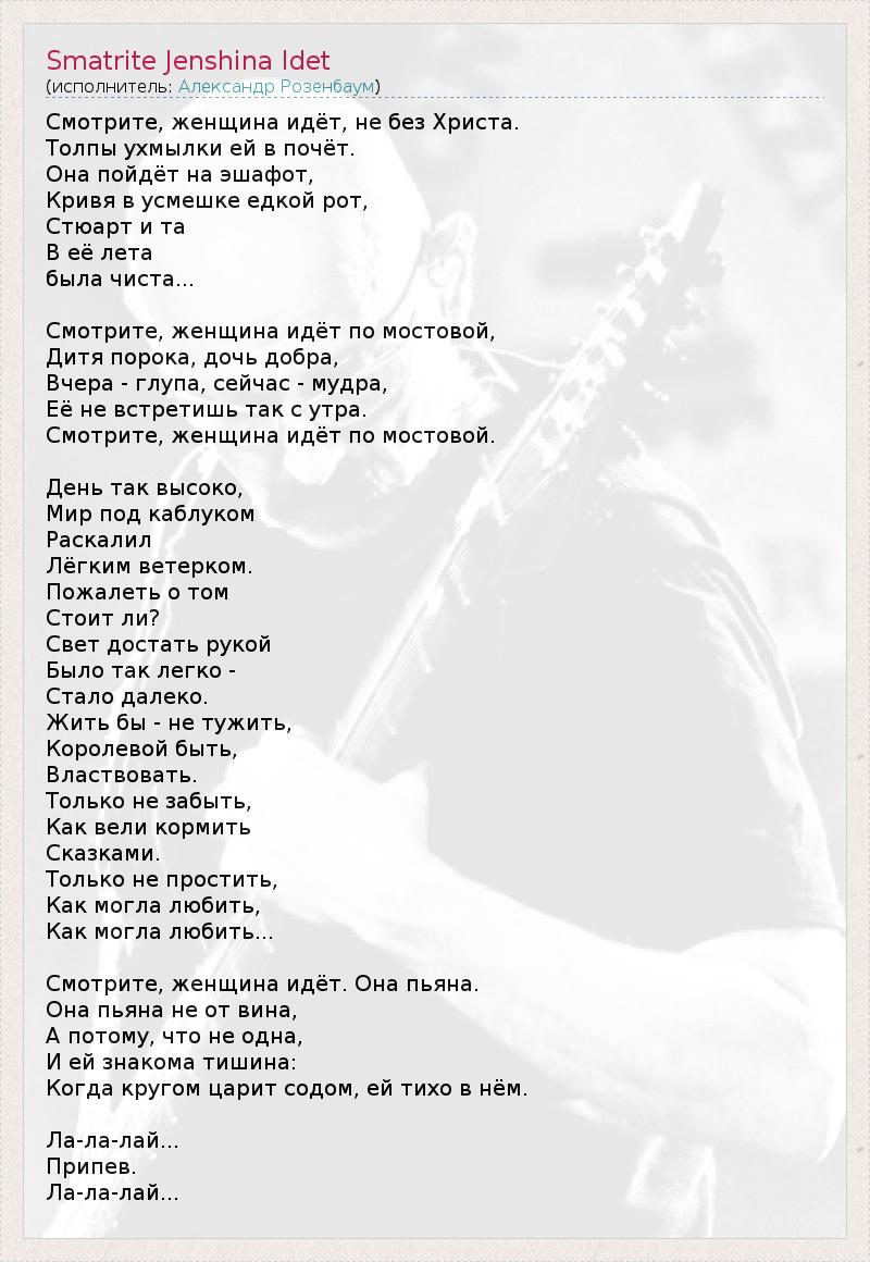 А как ты думаешь, о чем песня "Smatrite Jenshina Idet" ?