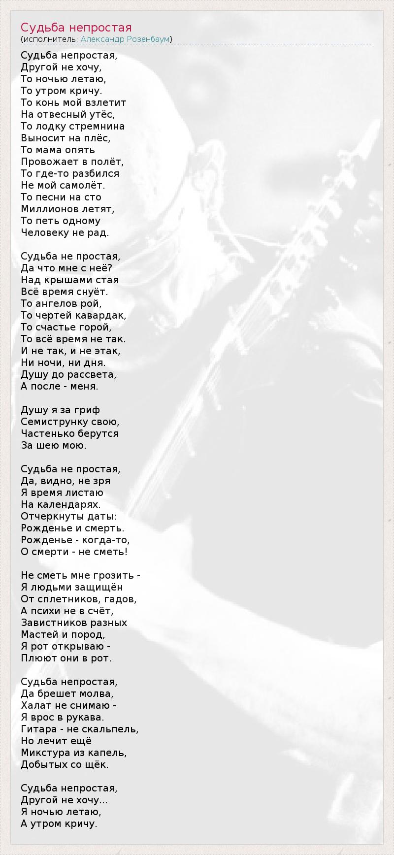 А как ты думаешь, о чем песня "Судьба непростая" ?