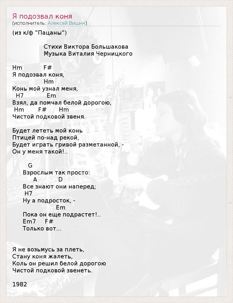 А как ты думаешь, о чем песня "Я подозвал коня" ?