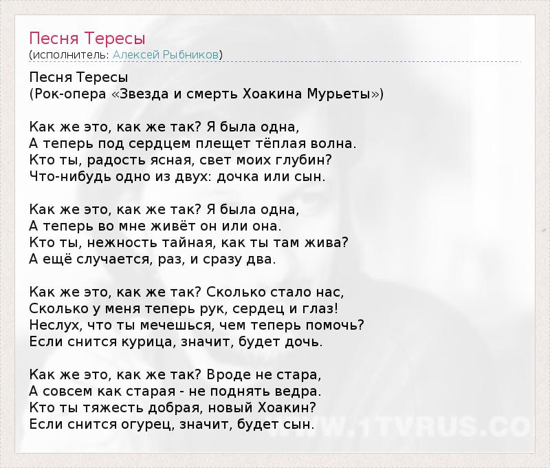 А как ты думаешь, о чем песня "Песня Тересы" ?