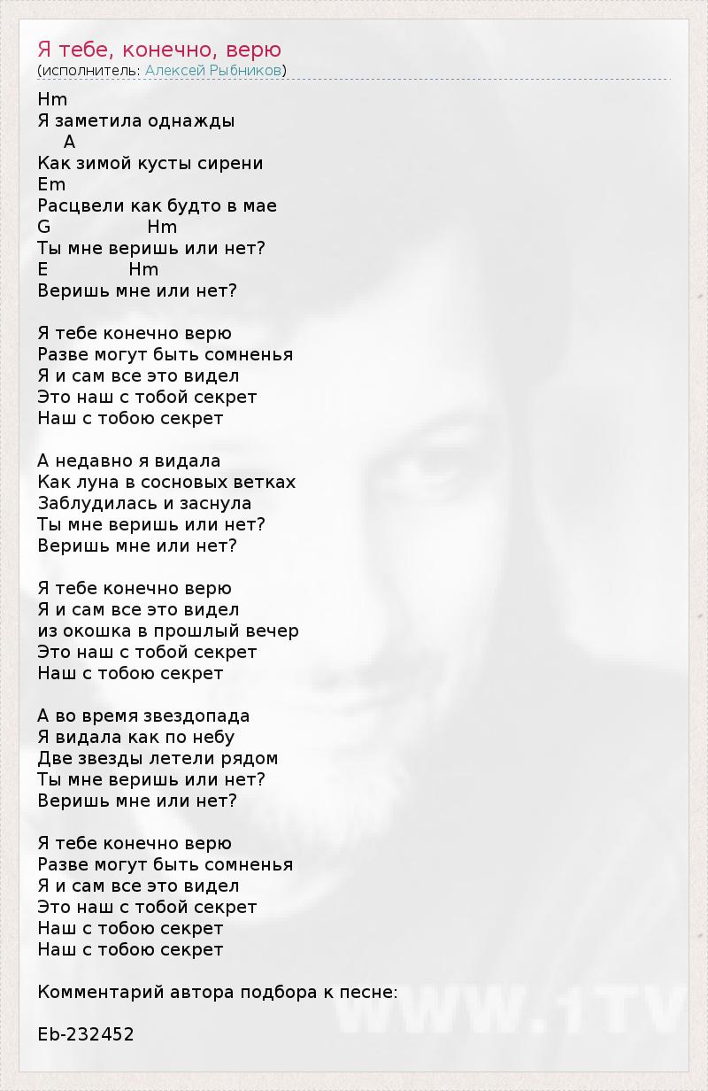 ГлавнаяИсполнителиАлексей РыбниковЯ тебе, конечно, верю