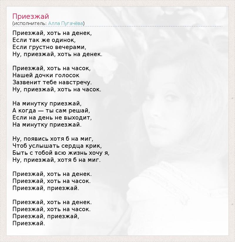 Ну, приезжай, хотя б на миг.