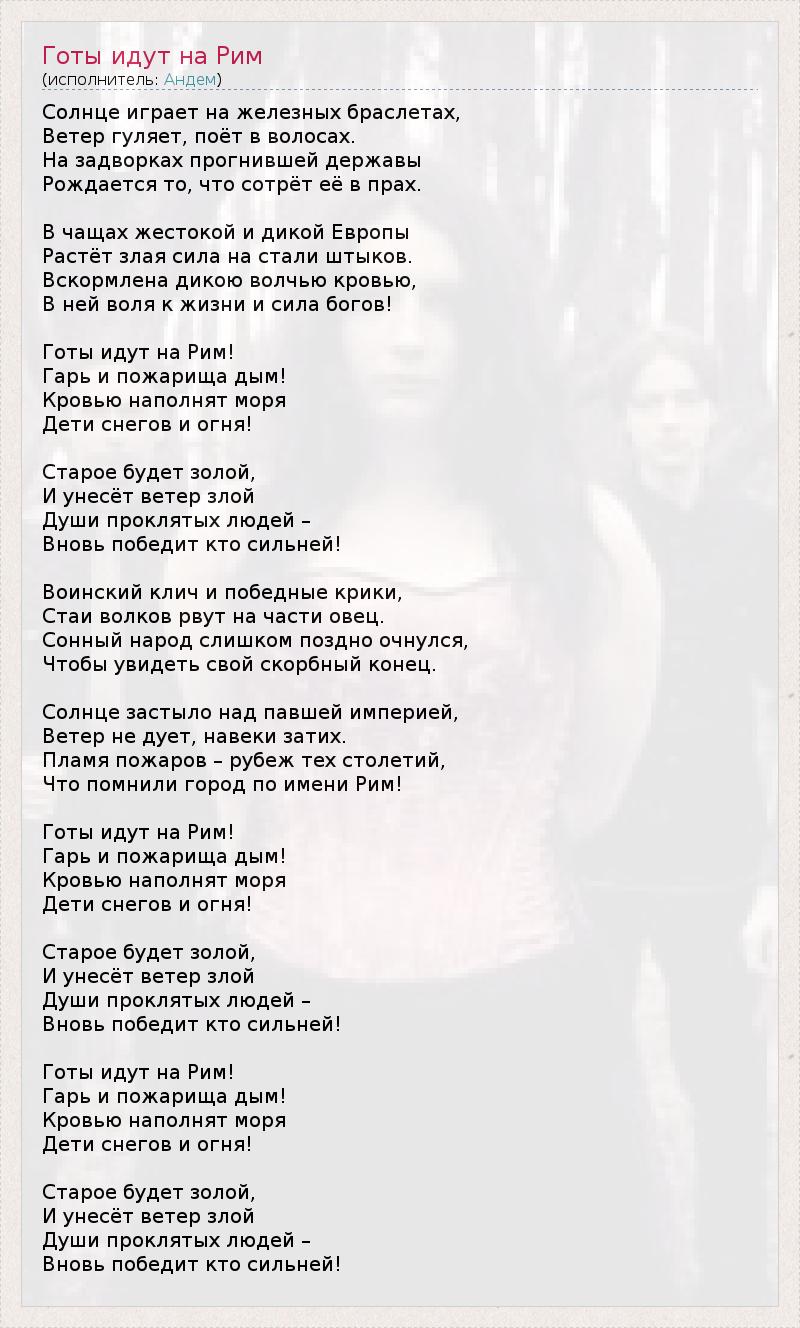 А как ты думаешь, о чем песня "Готы идут на Рим" ?