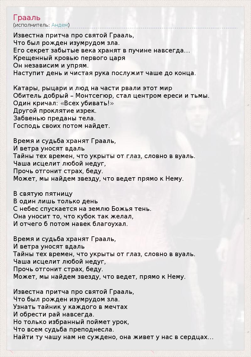 А как ты думаешь, о чем песня "Грааль" ?