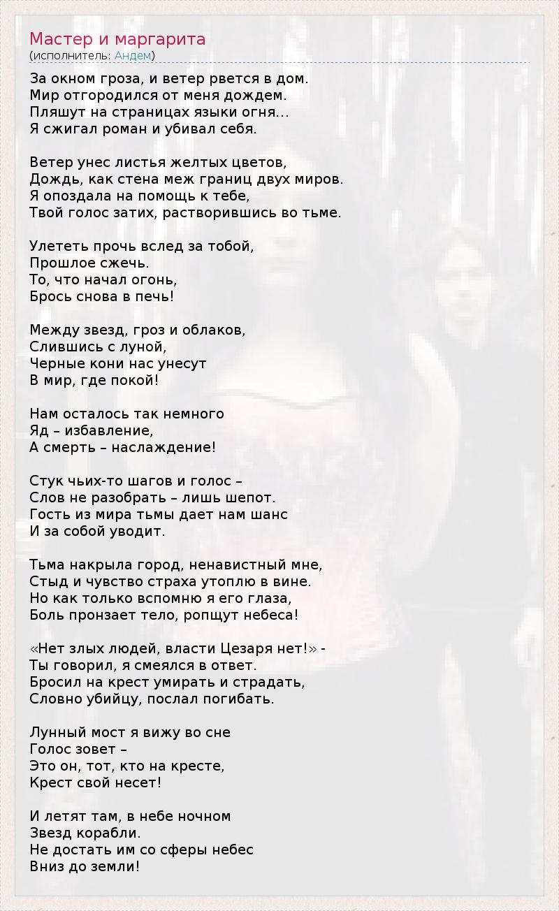 ГлавнаяИсполнителиАндемМастер и маргарита