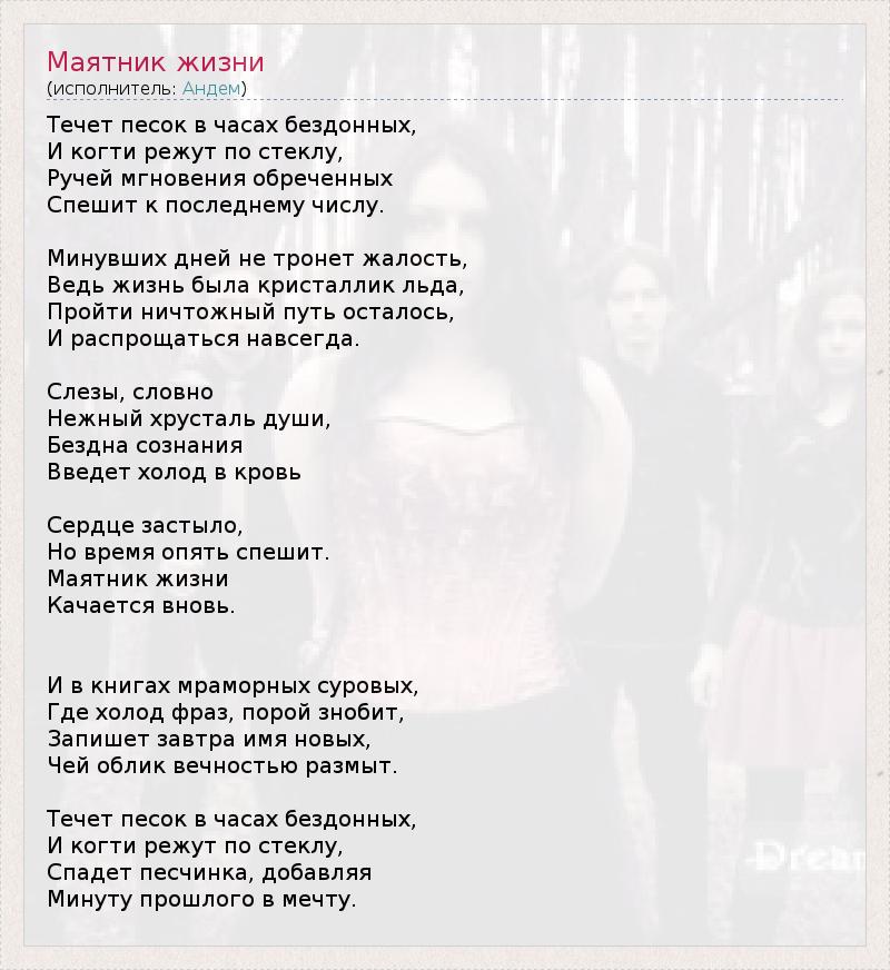 А как ты думаешь, о чем песня "Маятник жизни" ?