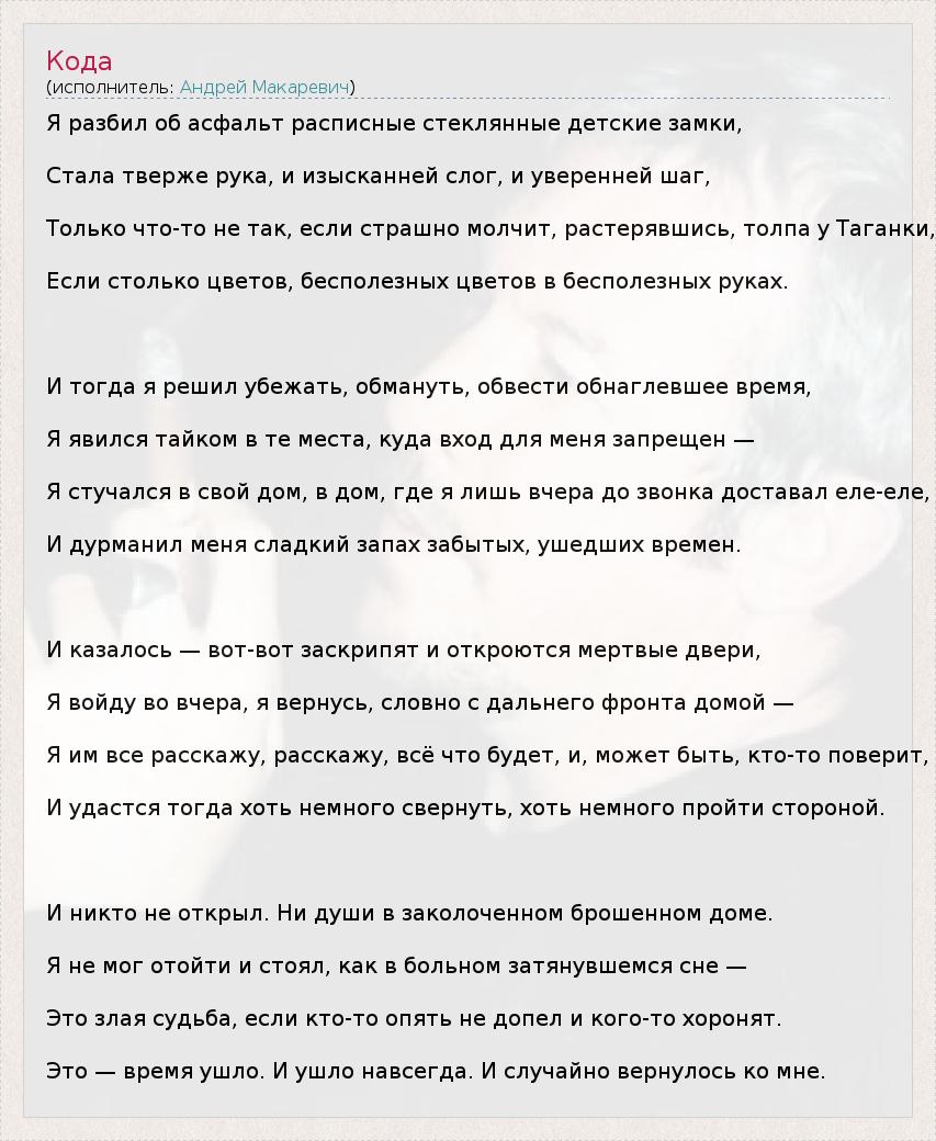 Это интересно:Бессменный лидер рок-группы «Машина времени».Выпускник Московского архитектурного института с дипломом художника-графика.Один из основателей группы «Машина времени» в 1969 году, автор почти всех песен и музыки. Харизматический лидер. Выпустил восемь авторских альбомов, из которых половина — классические бардовские программы. В содружестве с другими авторами написал немало... продолжение