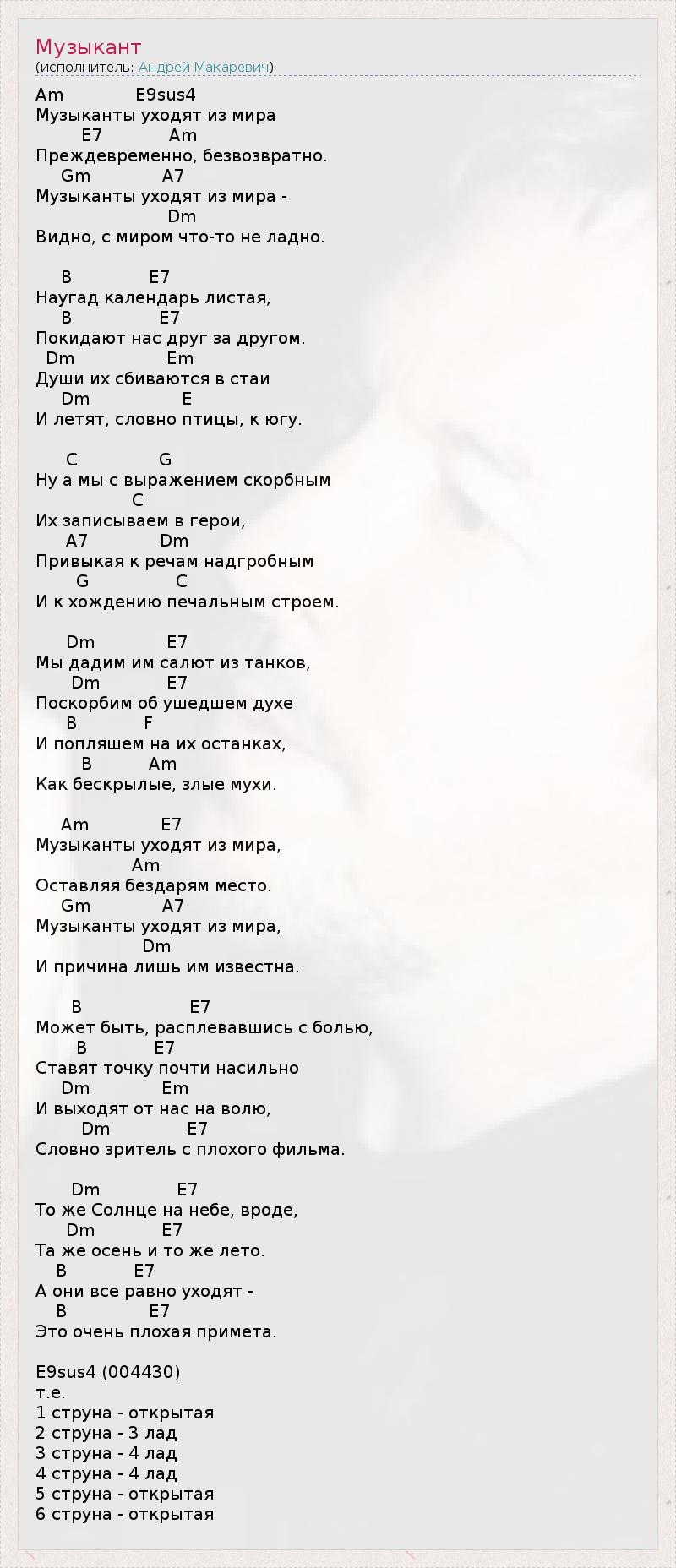 А как ты думаешь, о чем песня "Музыкант" ?