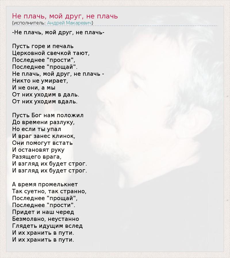 ГлавнаяИсполнителиАндрей МакаревичНе плачь, мой друг, не плачь