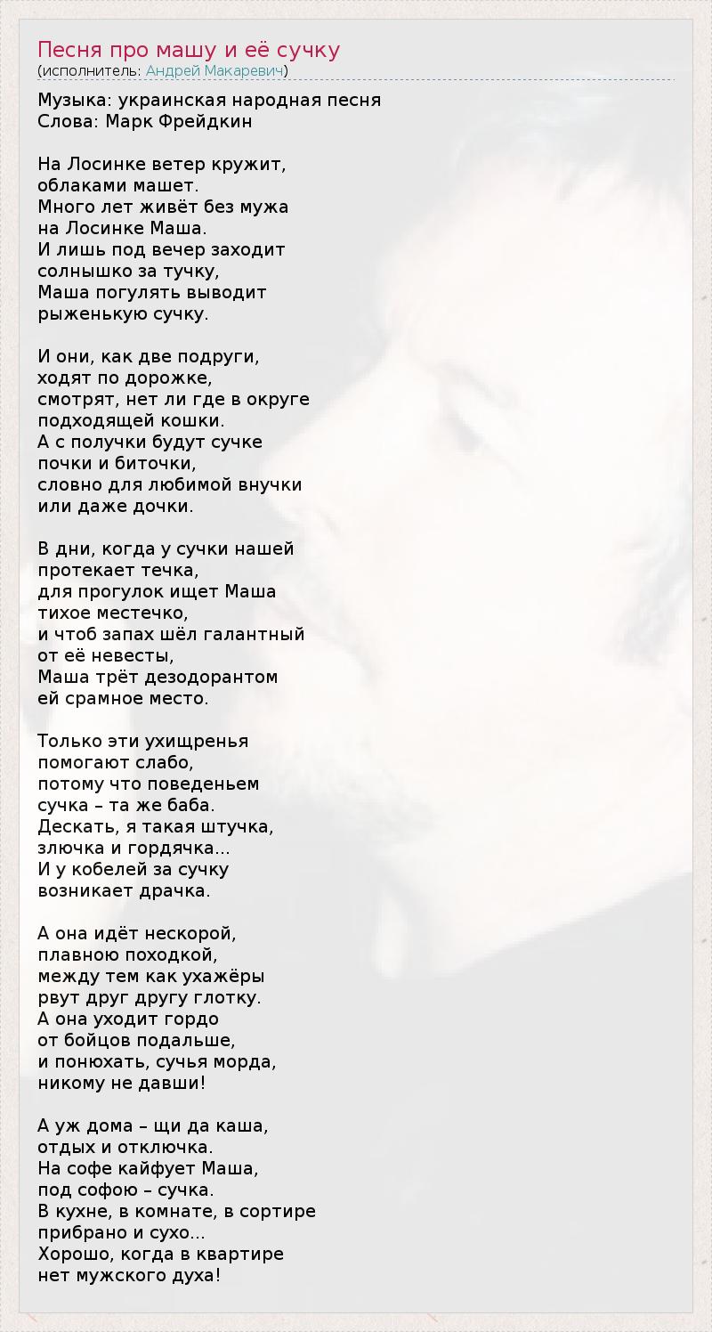 ГлавнаяИсполнителиАндрей МакаревичПесня про машу и её сучку