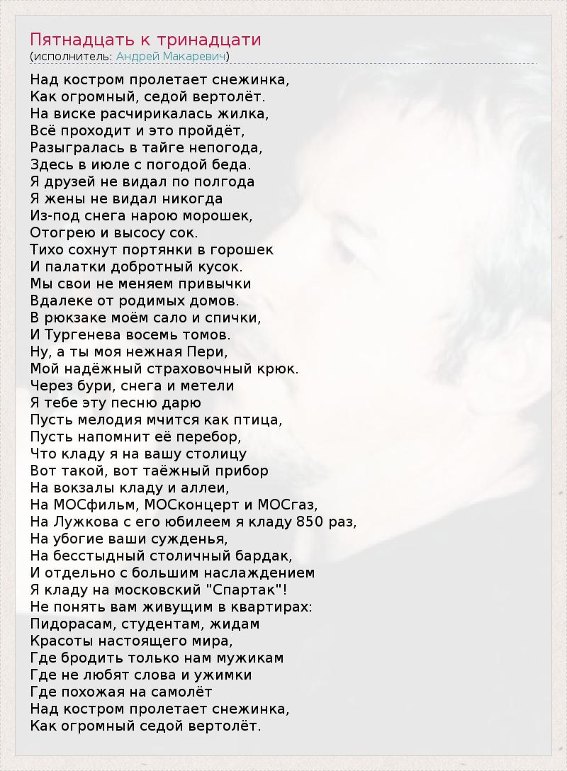 ГлавнаяИсполнителиАндрей МакаревичПятнадцать к тринадцати