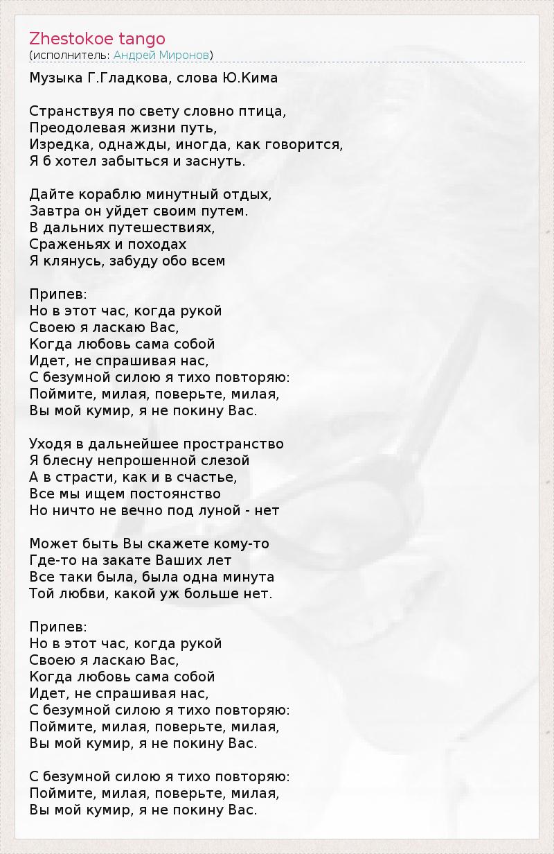 А как ты думаешь, о чем песня "Zhestokoe tango" ?