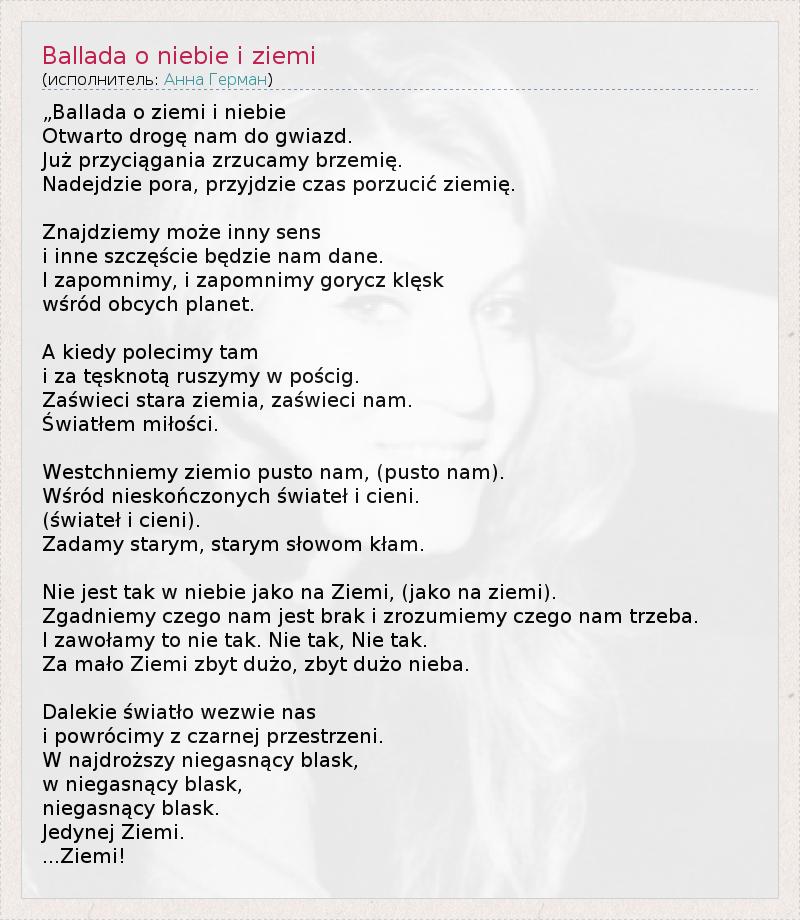 А как ты думаешь, о чем песня "Ballada o niebie i ziemi" ?