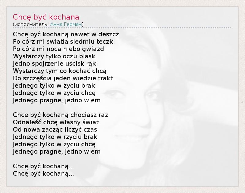 А как ты думаешь, о чем песня "Chcę być kochana" ?