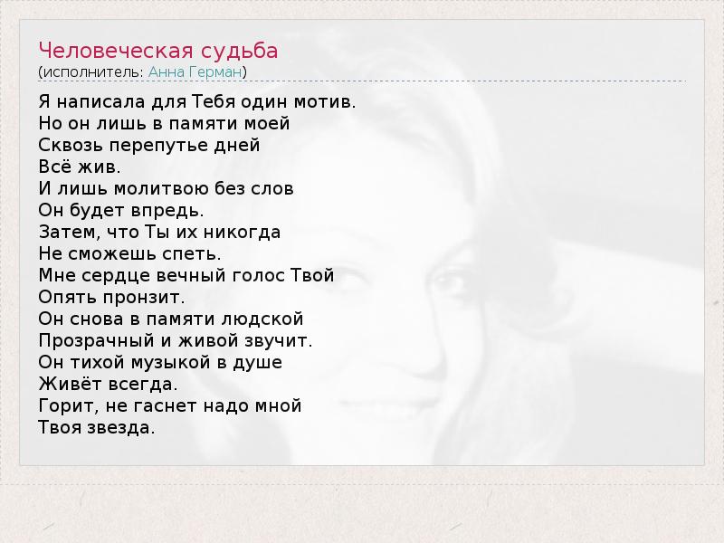 ГлавнаяИсполнителиАнна ГерманЧеловеческая судьба