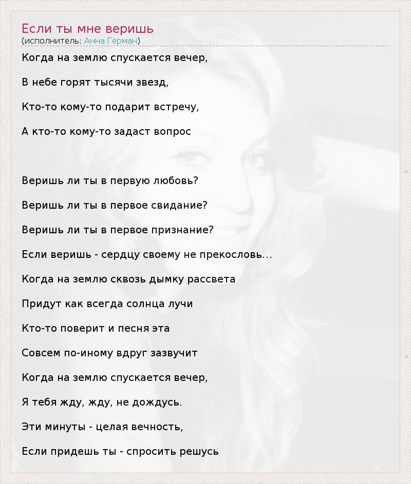 ГлавнаяИсполнителиАнна ГерманЕсли ты мне веришь