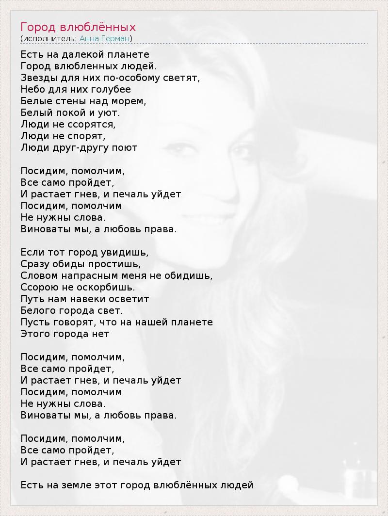 ГлавнаяИсполнителиАнна ГерманГород влюблённых