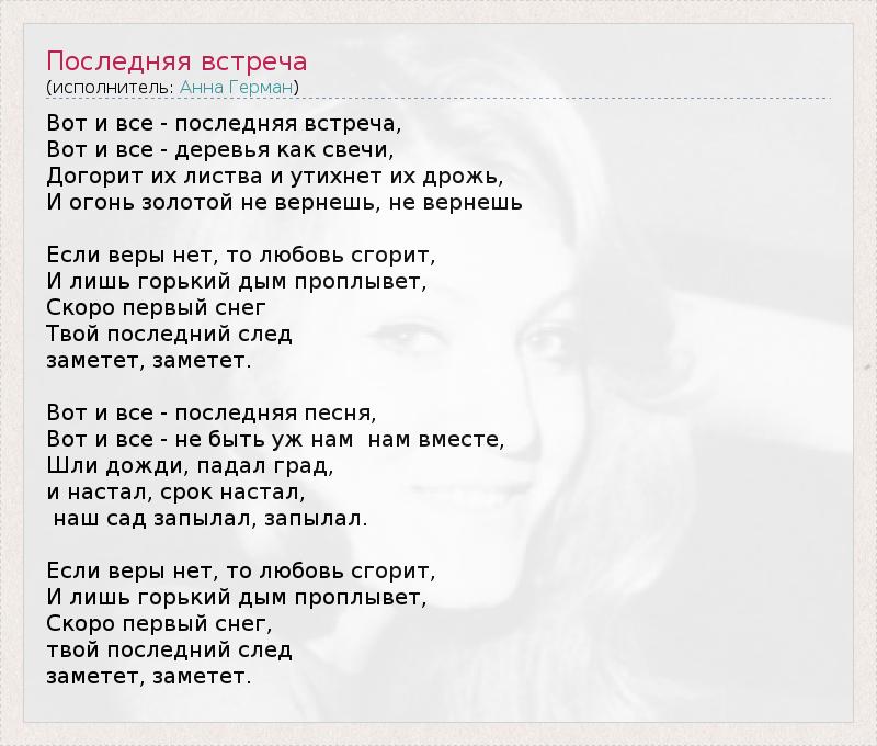 ГлавнаяИсполнителиАнна ГерманПоследняя встреча