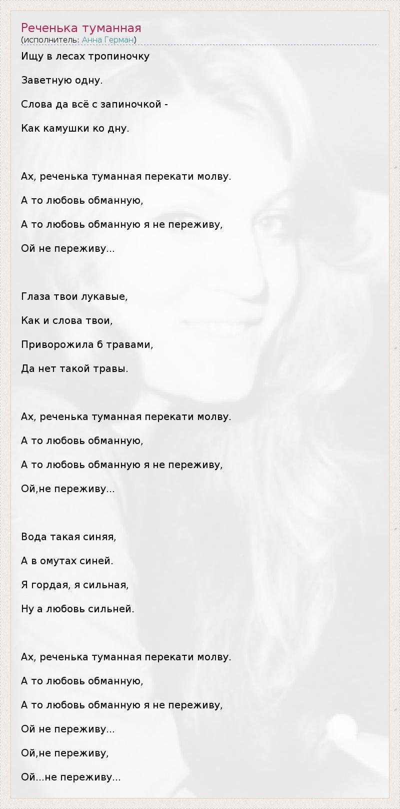 ГлавнаяИсполнителиАнна ГерманРеченька туманная