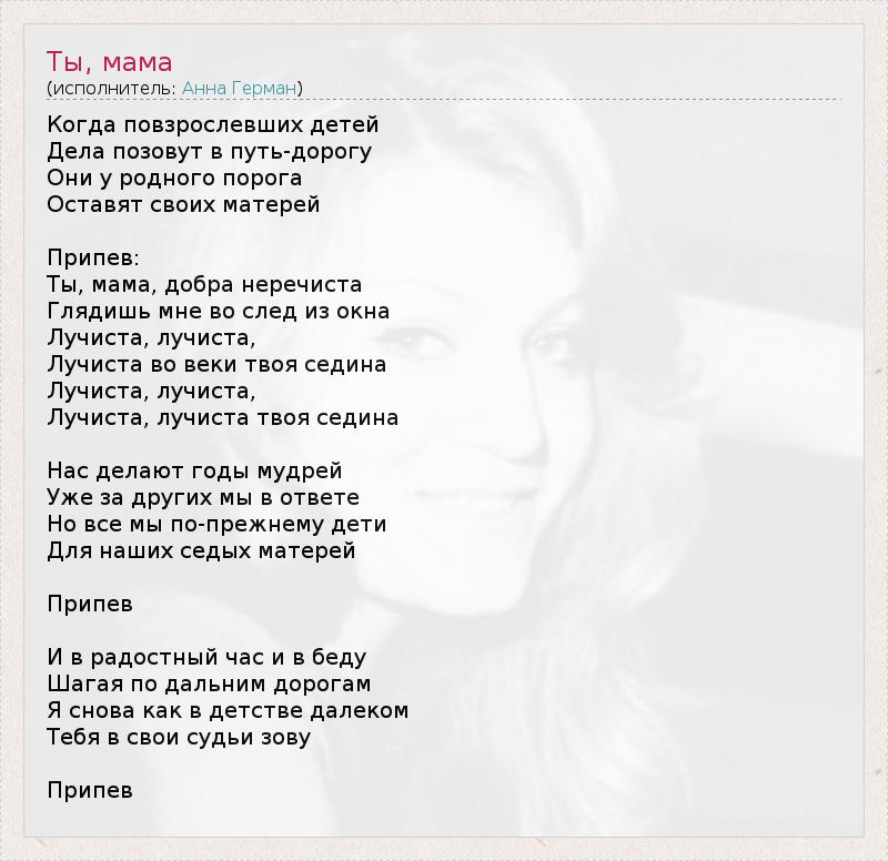 А как ты думаешь, о чем песня "Ты, мама" ?
