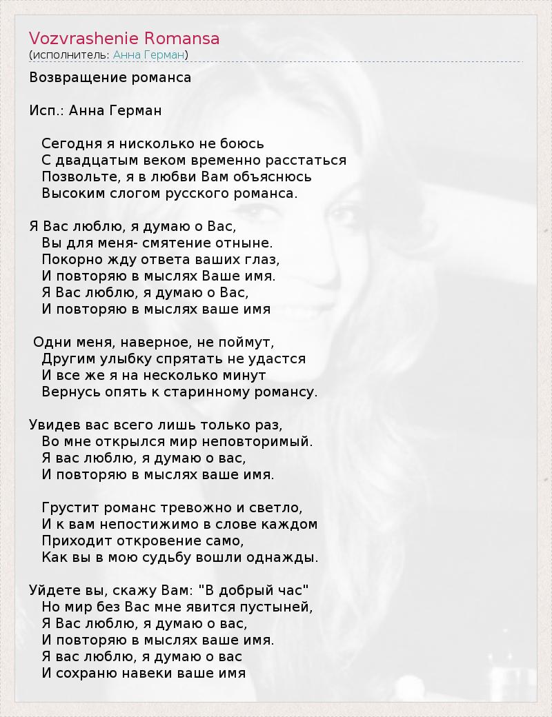 А как ты думаешь, о чем песня "Vozvrashenie Romansa" ?