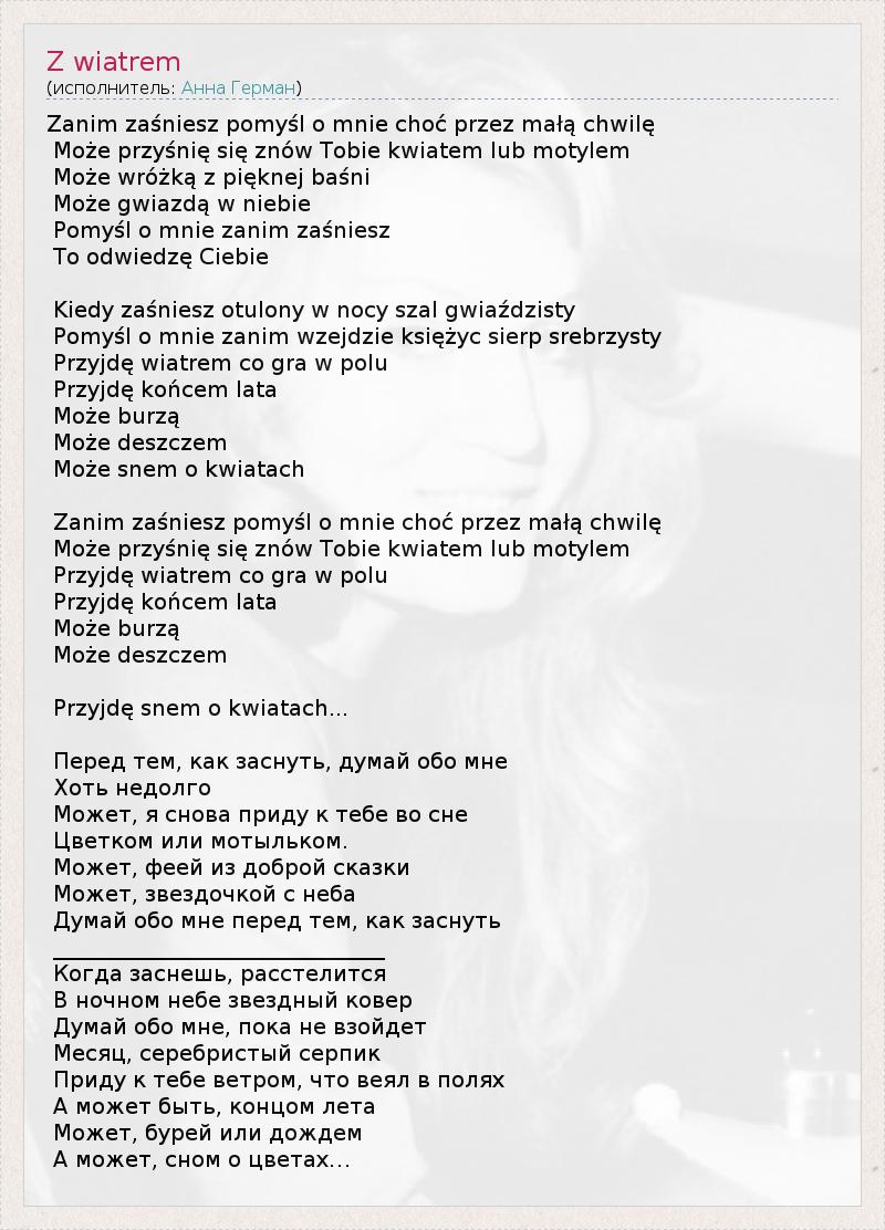 А как ты думаешь, о чем песня "Z wiatrem" ?