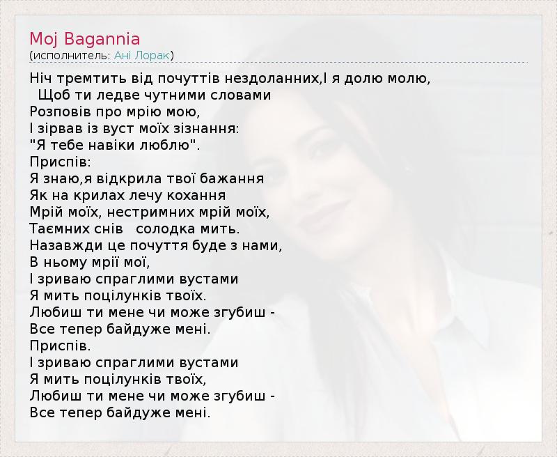 А как ты думаешь, о чем песня "Moj Bagannia" ?