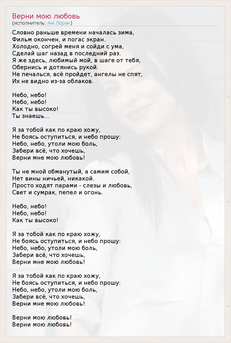 ГлавнаяИсполнителиАні ЛоракВерни мою любовь
