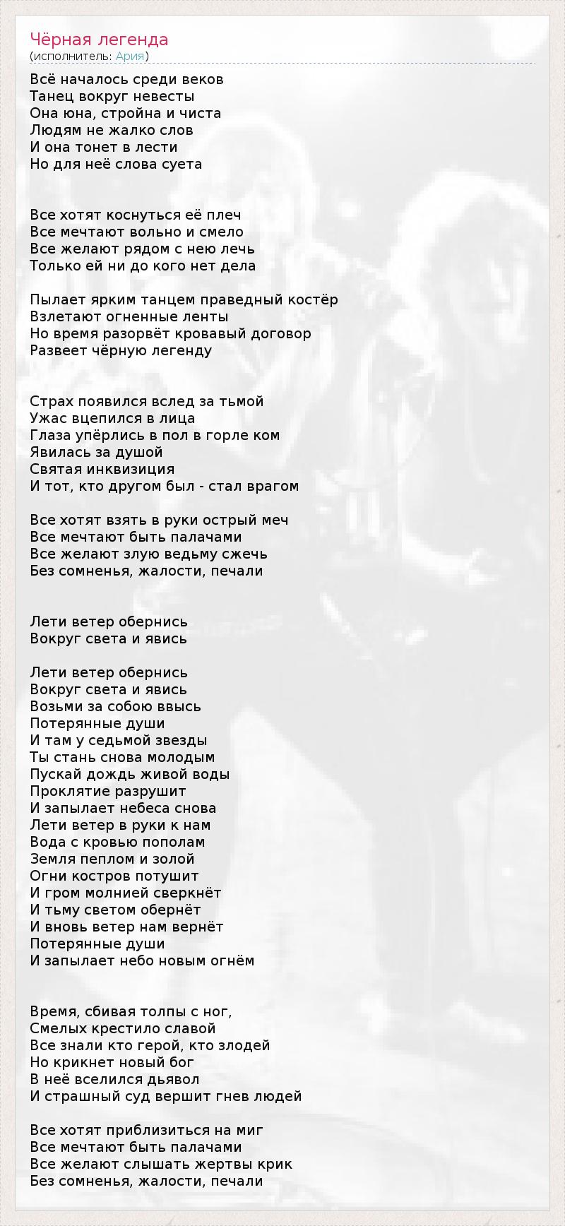 ГлавнаяИсполнителиАрияЧёрная легенда