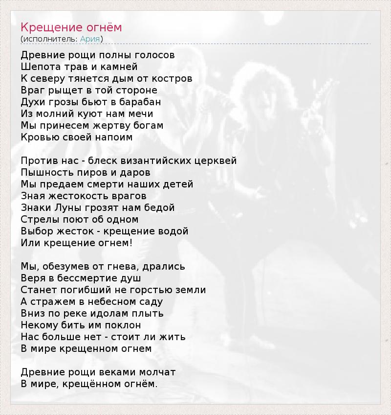А как ты думаешь, о чем песня "Крещение огнём" ?