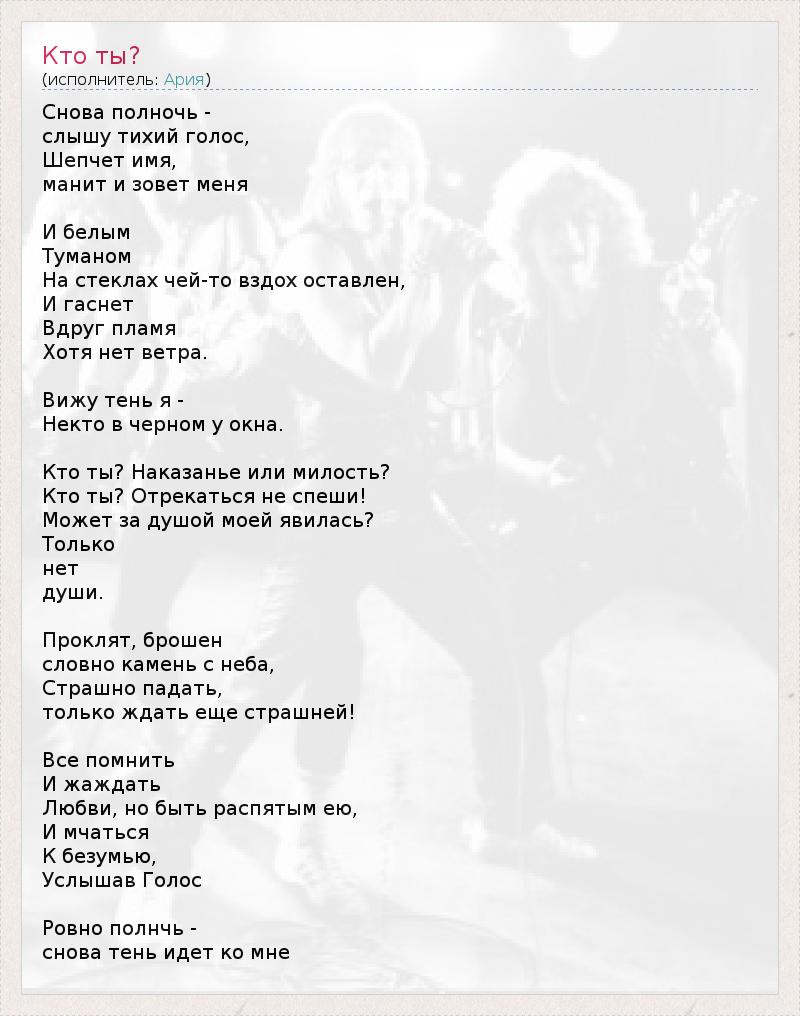 Это интересно:«Ария» — российская группа, играющая в стиле метал. Музыка «Арии» выдержана в стиле групп «новой волны британского хеви-метала».«Ария» является одной из старейших и самых успешных метал-групп России. Лауреат премии Fuzz 2007 года как лучшая live-группа. Её участниками были образованы многие другие известные группы («Мастер», «Кипелов», «Маврик», «Артерия»), которые вместе составляют плеяду,... продолжение
