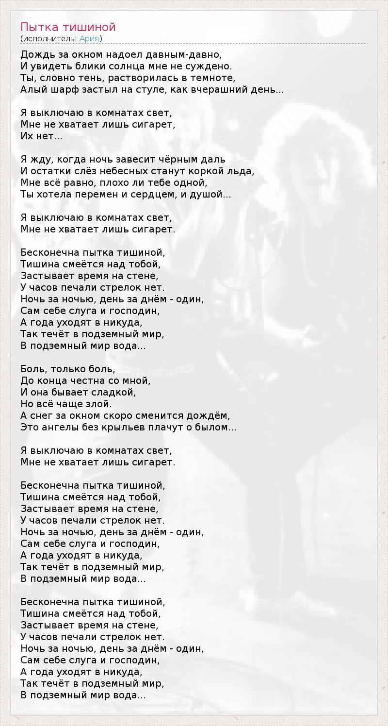 А как ты думаешь, о чем песня "Пытка тишиной" ?