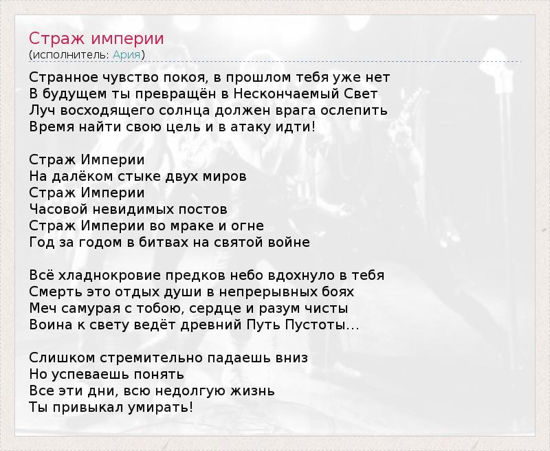 ГлавнаяИсполнителиАрияСтраж империи