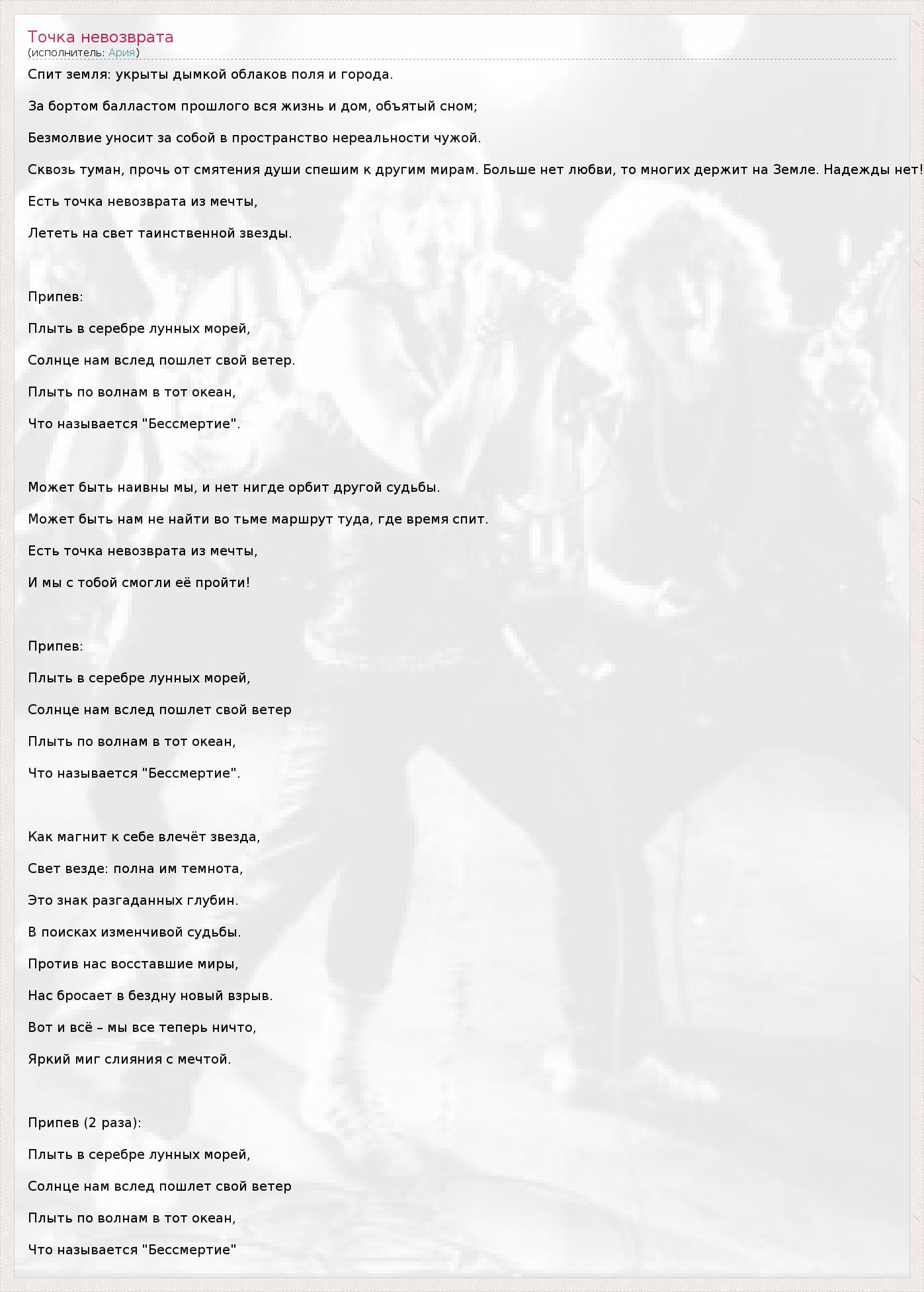 ГлавнаяИсполнителиАрияТочка невозврата