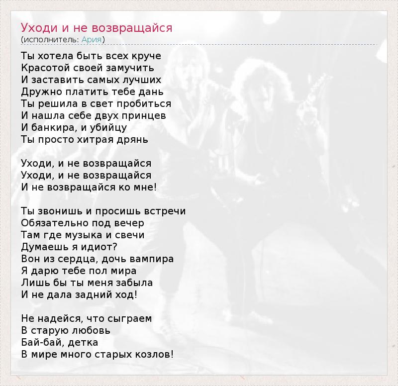 ГлавнаяИсполнителиАрияУходи и не возвращайся