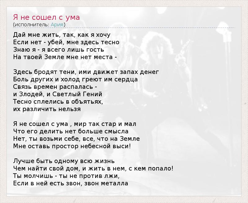 ГлавнаяИсполнителиАрияЯ не сошел с ума