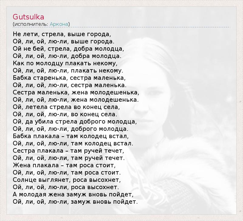 Аркона - Стрела http://megalyrics.ru/lyric/%D0%B0%D1%80%D0%BA%D0%BE%D0%BD%D0%B0/%D1%81%D1%82%D1%80%D0%B5%D0%BB%D0%B0.htm#ixzz22xSiYEPi
