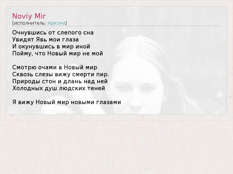 А как ты думаешь, о чем песня "Noviy Mir" ?